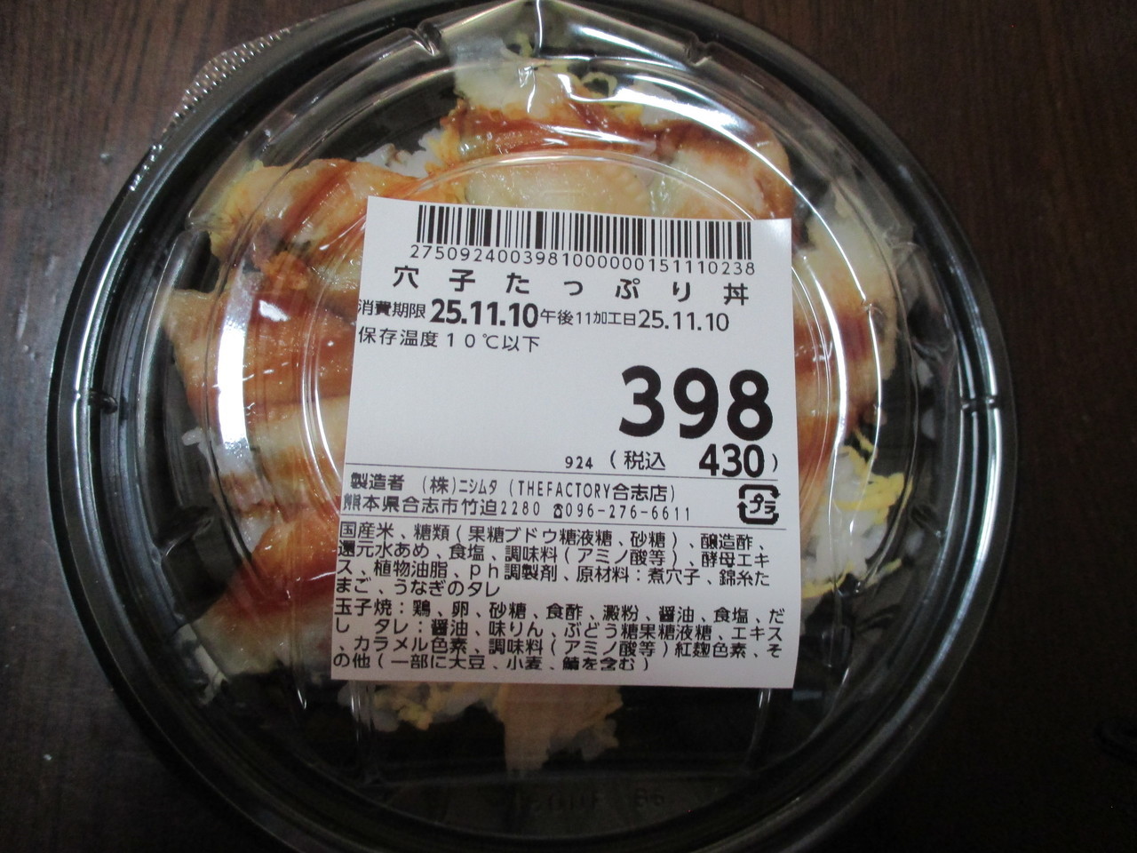 ニシムタのお寿司売場で穴子たっぷり丼をみつけました。ゆめタウン光の森の魚屋さんの真似かな?名前も「たっぷり」がついています。